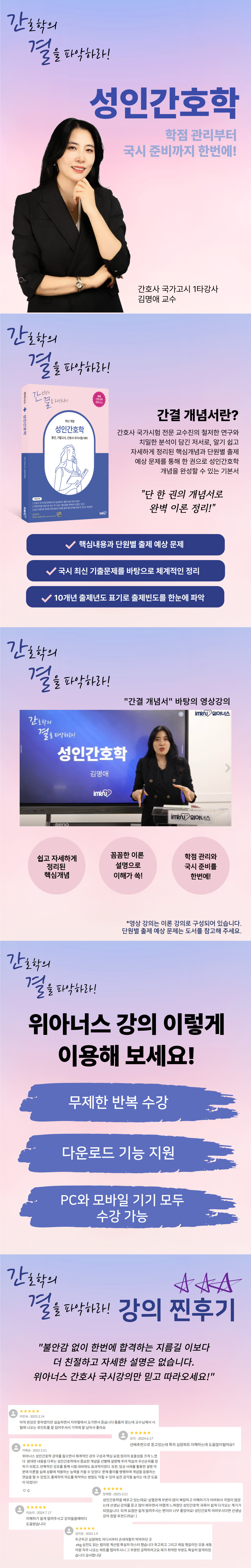 ✅ 김명애 교수님의 「간결 개념서 성인간호학」 강의가 새롭게 오픈되었습니다!!